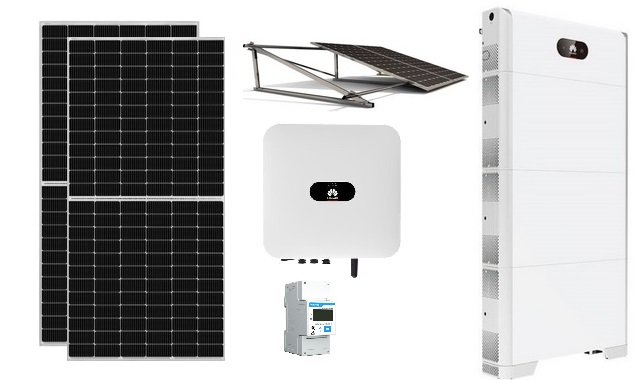 Autoconsumo para instalación individual residencial, con paneles Canadian Solar instalados sobre cubierta de teja o cubierta plana con estructura 15°, bases de hormigón, y tensores de seguridad.