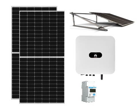 Autoconsumo para instalación individual residencial, con paneles Canadian Solar instalados sobre cubierta de teja o cubierta plana con estructura 15°, bases de hormigón, y tensores de seguridad.